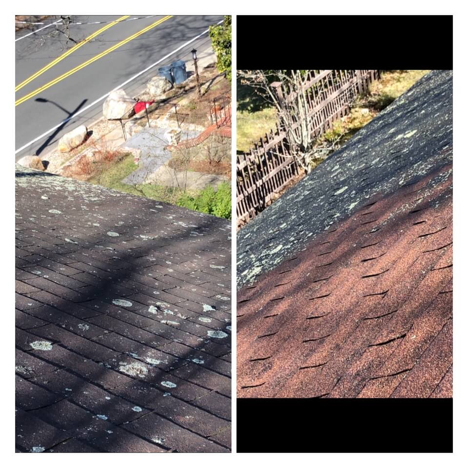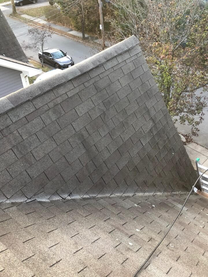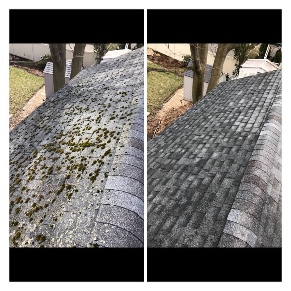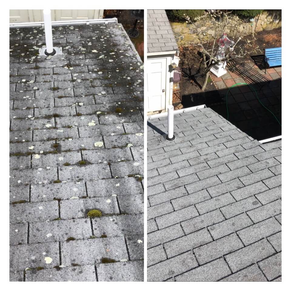 HiCleaners is the most experienced company in Amherst, NH that deals with roof washing and roof soft washing. All of our employees are trained to recognize precise solution mixing ratios to provide you with the safest and most effective soft washing service. Roofs are a commonly neglected part of a house due to the fact that most people don’t have ladders to access it, so it is very easy to just leave it alone and forget about problems that may start to arise. Just like many home owners, discoloration and small bits of moss on a roof can be overlooked because of the misconception that it is just aesthetic. However, it isn’t just aesthetic, the moss slowly lifts the granules off the shingles which in turn shorten the life of the shingle. The moss also spreads, just like any bacteria if it is left alone for too long, it can quickly become a problem that spirals out of control. Call HiCleaners for a free quote, we only use the most advanced eco-friendly solutions and equipment to make sure the job is done right, for the safety of the employees, your plants, grass, pets, and children.